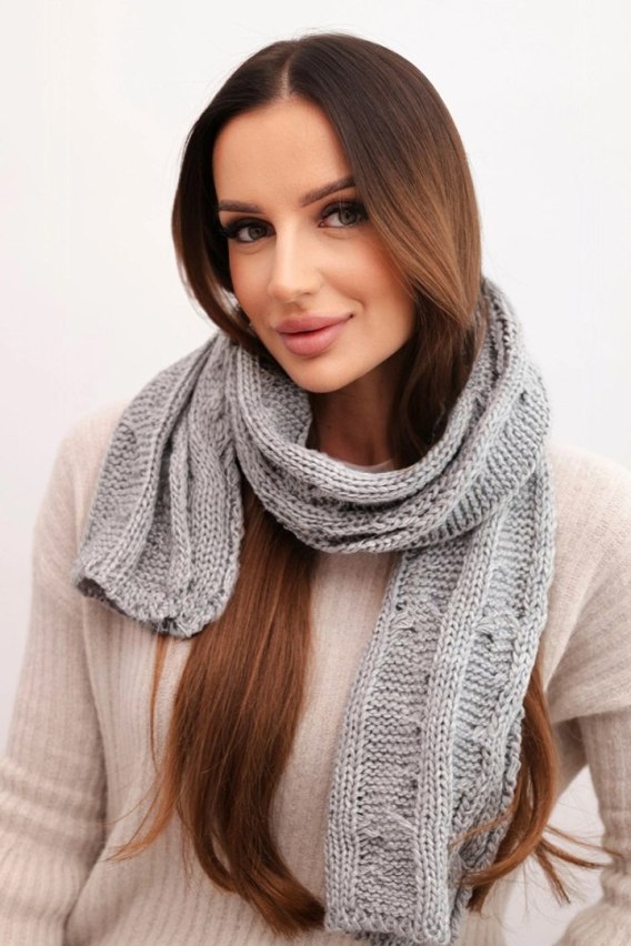 • Szalik damski wełniany klasyczny z warkoczowym splotem KN22 szary
